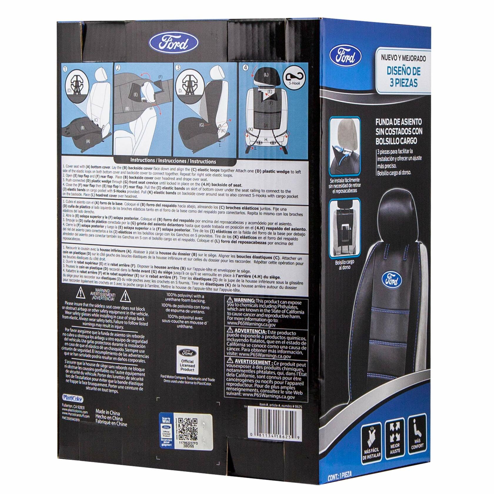 Ford Seat Cover Logo Contrast Stitching 3 Piece Sideless Car Truck SUV Black