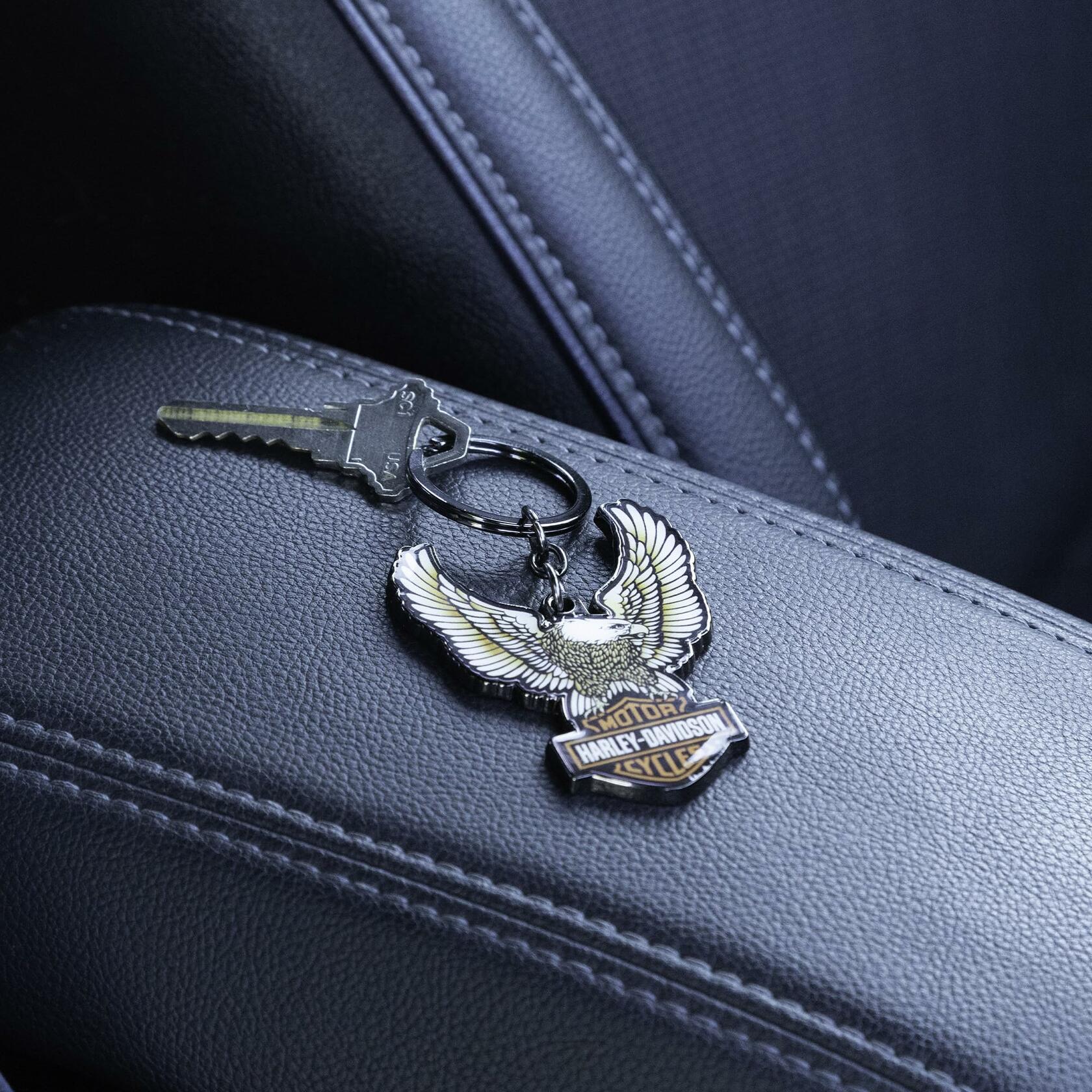 Plasticolor’s Harley-Davidson Domed Eagle with Bar & Shield Logo Key Chain comes in detail that is unmatched. This listing is for one (1) Keychain. Officially licensed by Harley-Davidson. Key Chain has the Classic Eagle with Bar and Shield design that is recognized anywhere. The product includes a double ring for keys and zipper pulls. Keychain measures 2.50 inches long by 1.875 inches wide. Plasticolor’s key chains are designed and manufactured with a scratch resistant enamel doomed coating over the logo to prevent peeling, cracking or fading. Show off your personality with Plasticolor’s Harley-Davidson Domed Eagle with Bar & Shield Logo multi-use keychain today!