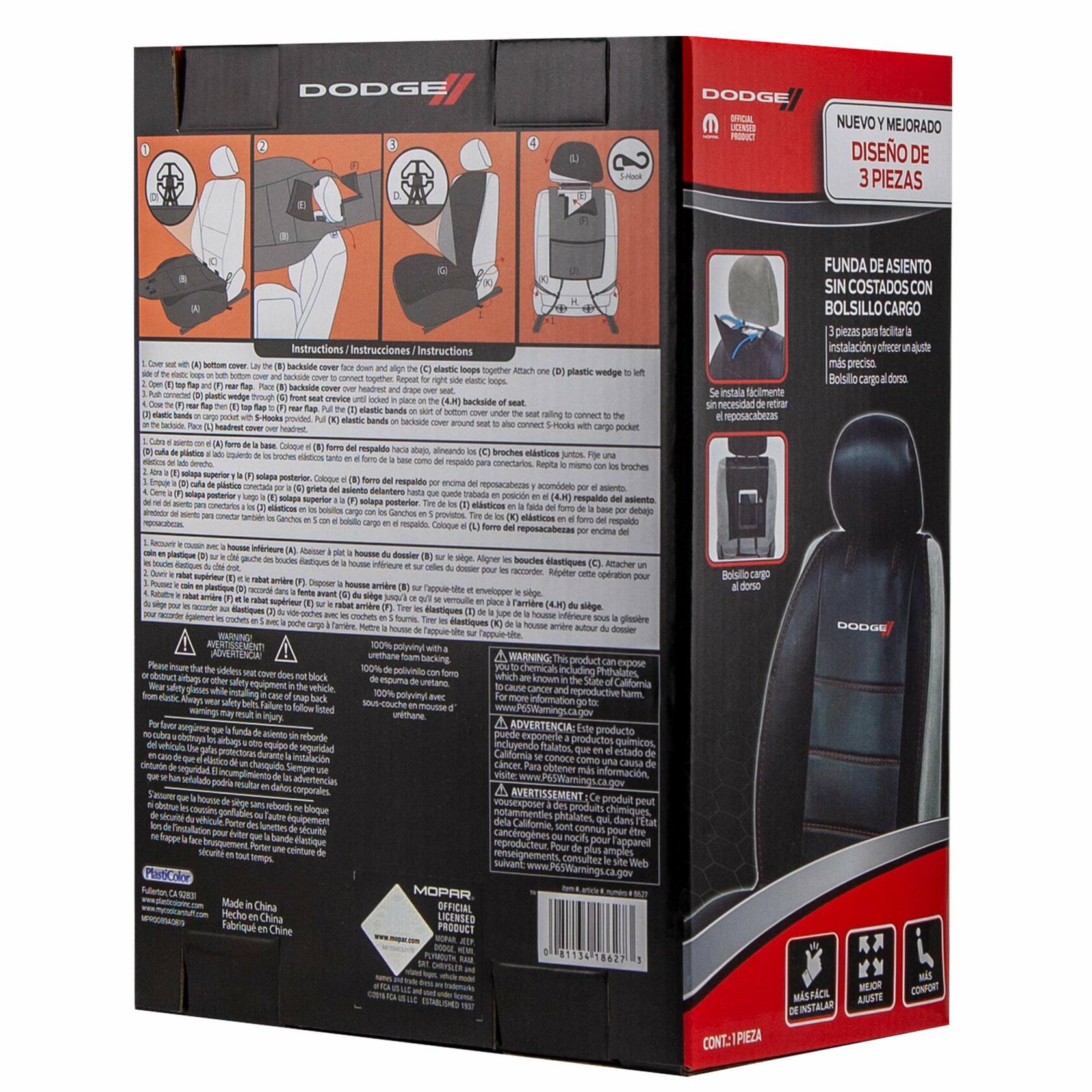 Plasticolor 008627R01 Dodge Seat Cover Logo Stitching 3 Piece Sideless Black