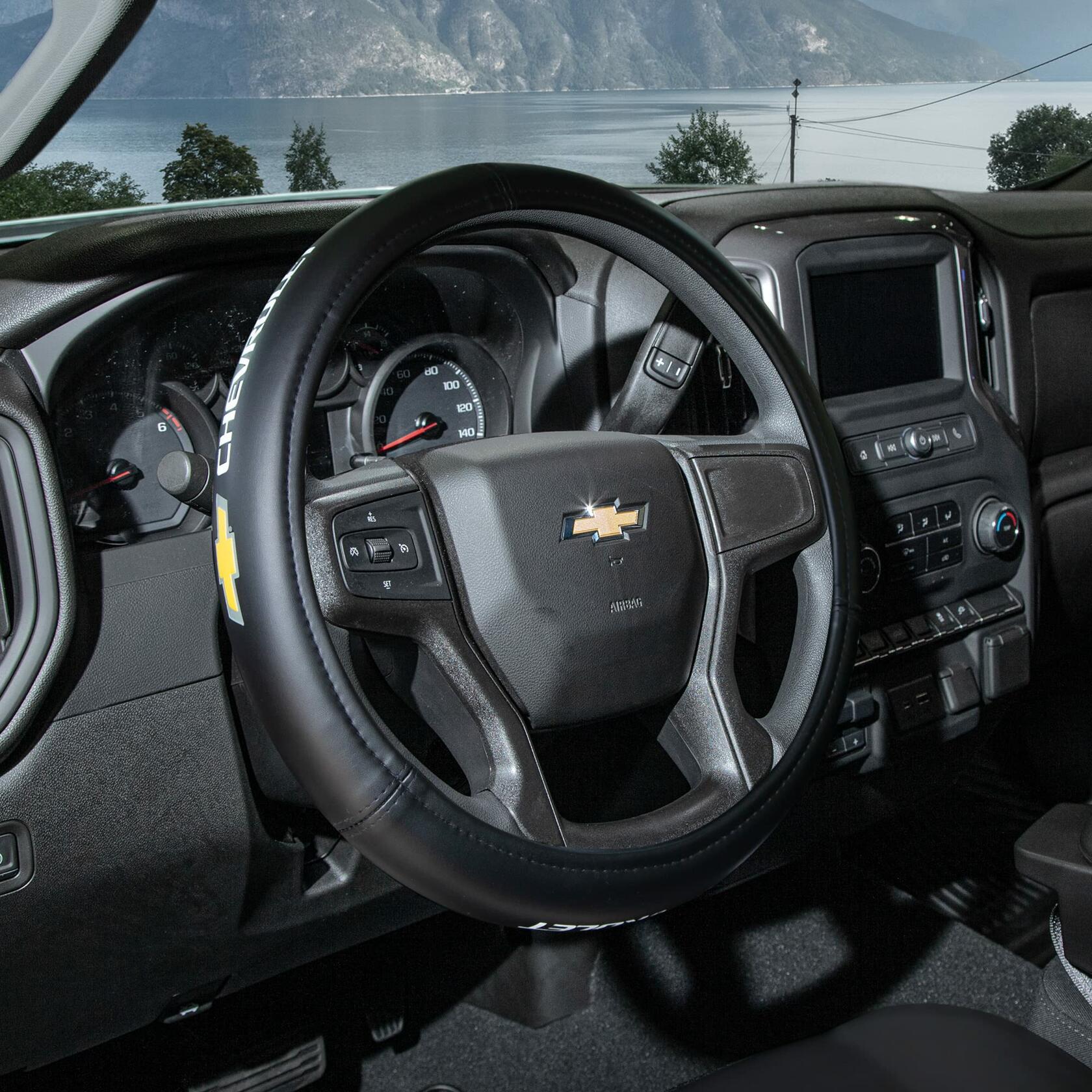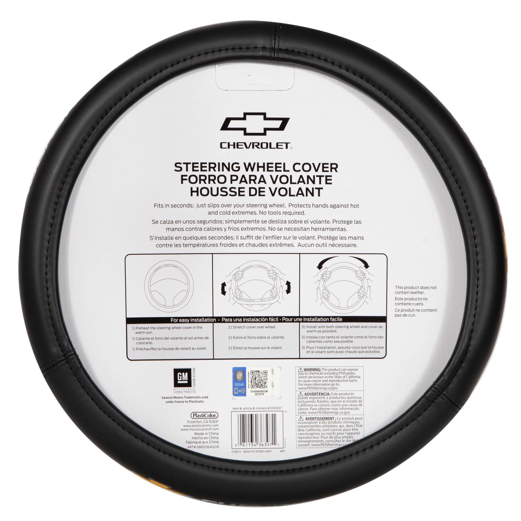 - Plasticolors Chevy premium steering wheel cover is built with quality and style.
