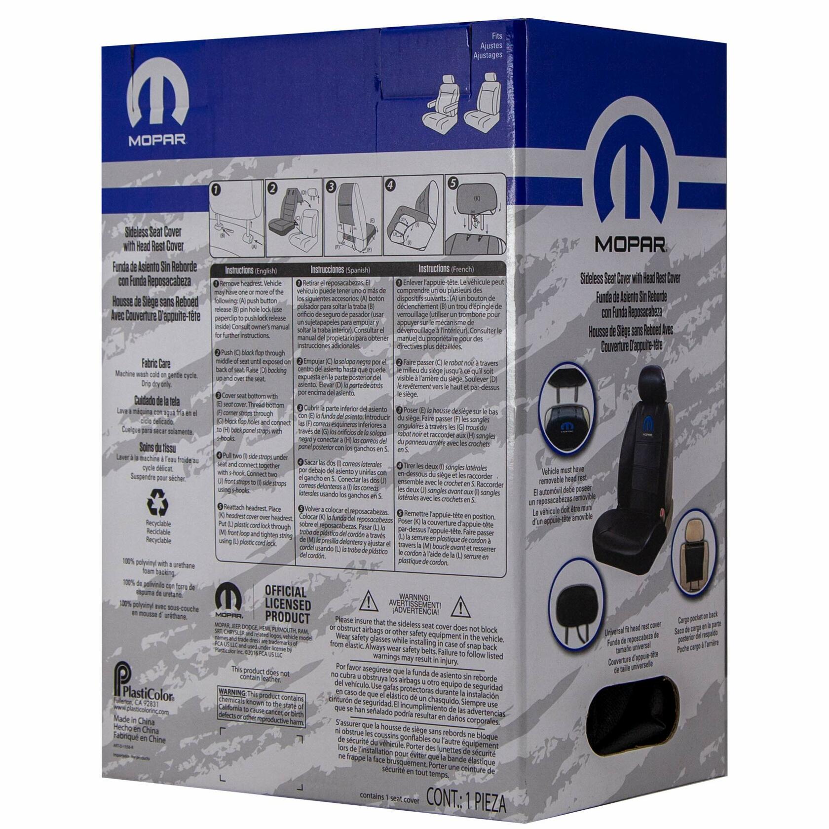 PLASTICOLOR Mopar Side Less Seat Cover Sideless Logo Contrast Stitching