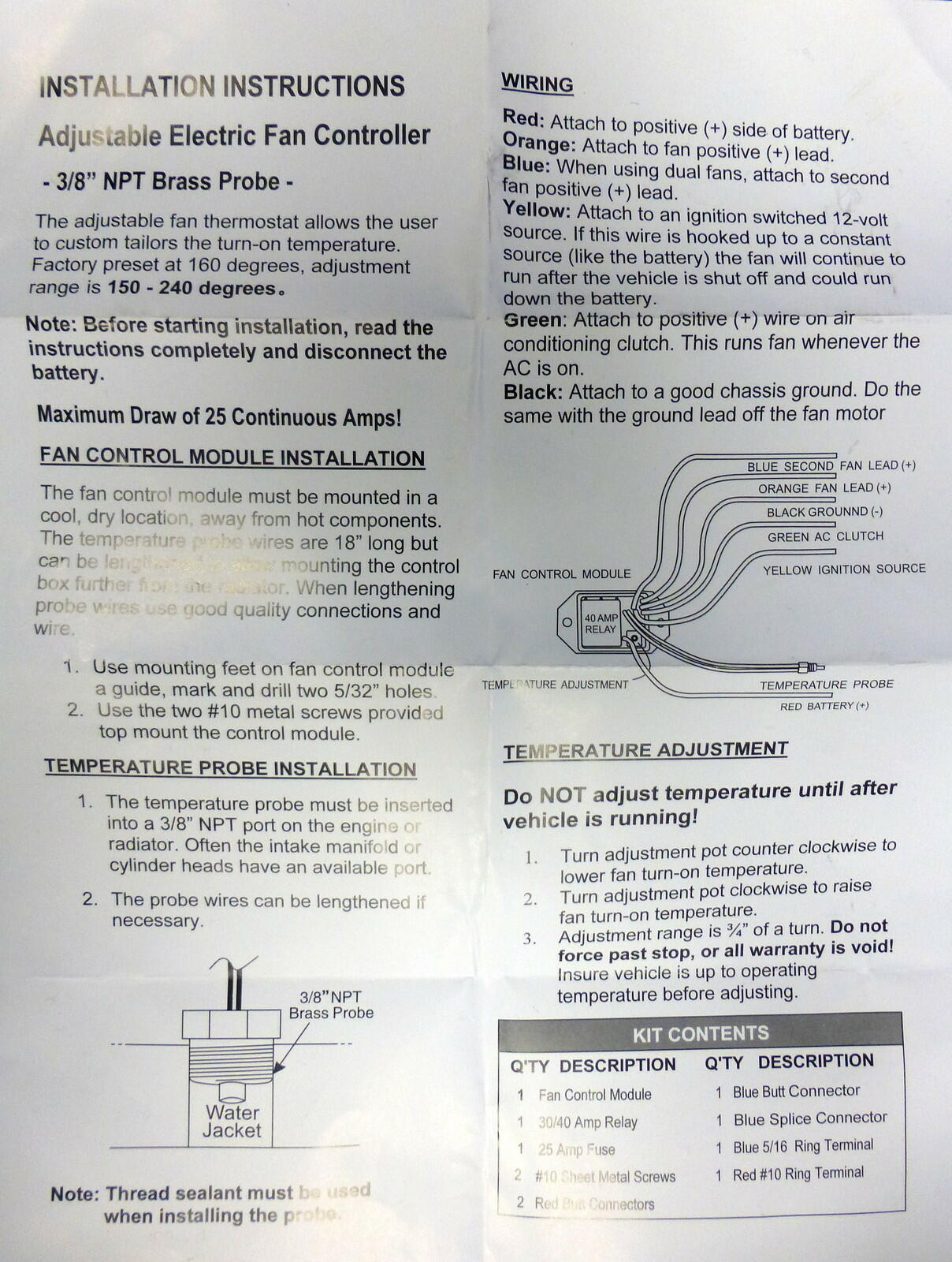 Proform 69599 Adjustable Electric Fan Controller Kit Push In Probe with Relay