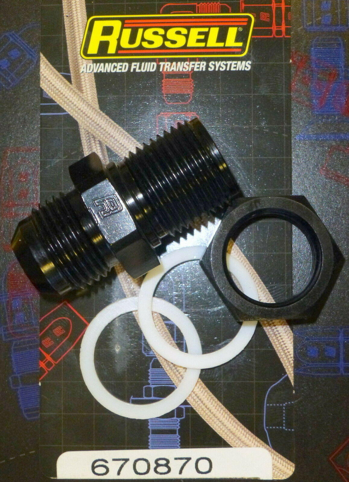 Russell 670870 Fuel Cell Bulkhead Fitting, Black Anodized -10AN Part# 670870